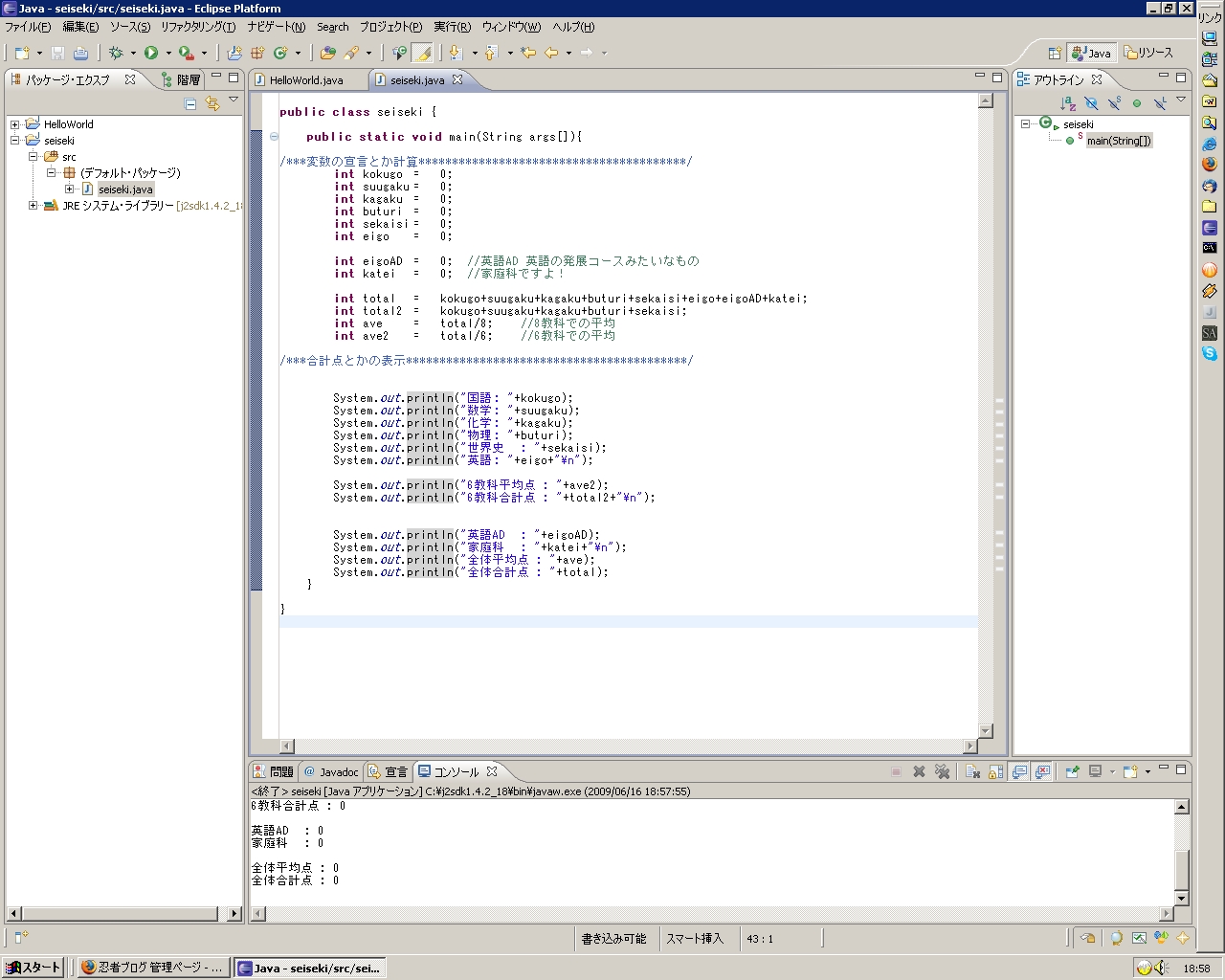 だから合計点と平均点を求めれるようなものを作った...つもり
